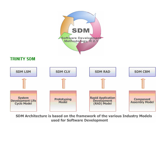 Trinity SDM Architecture is based on the frame work of the various industry models used for software development. Enterprises are striving to improve IT business processes and are faced with managing hundreds of applications that are distributed, multi- tiered and running across multiple platforms. Trinity found it's SDM Methodology to be an effective approach. Trinity delivers high-performing, complex systems to solve business challenges. Trinity 's SDM Methodology and expertise in product development, combined with Trinity certified Professionals, industry expertise, and implementation capabilities, allows us to develop solutions that bring exceptional value to our clients.